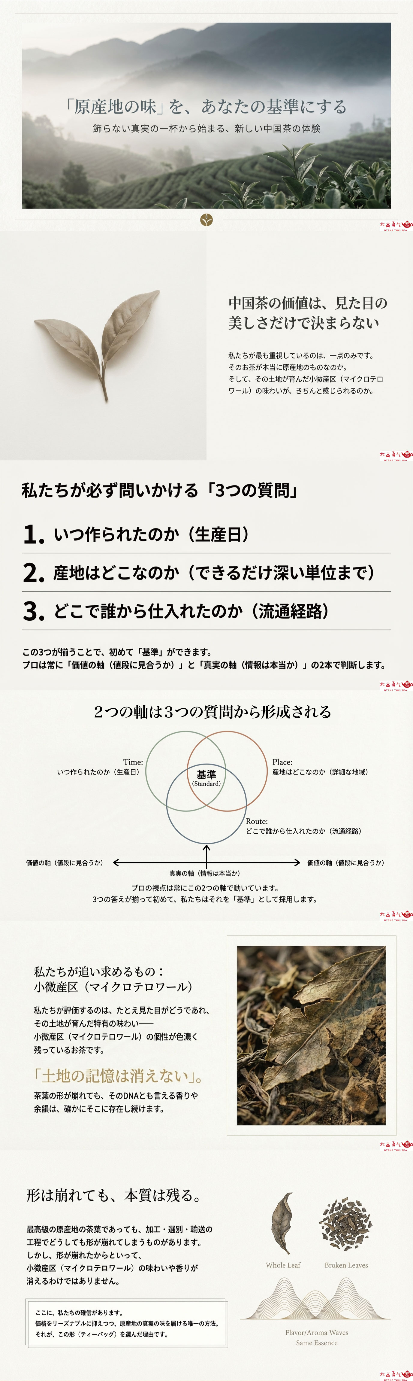 【原産地の中国茶が、迷わず選べる専門店】産地・生産日・テイスティングメモなど、選定の根拠を明記。