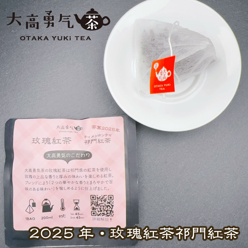 【玫瑰白茶 祁門紅茶(2025年春)】は、祁門県産紅茶に厳選した玫瑰を重ね、二つの花香とまろやかな旨味を束ねたティーバッグです。立ち上がりは上品なローズの香りと祁門の花蜜香が重なり、やわらかな甘さが広がります。茶湯はなめらかで“とろり”。深みのあるコクが支え、甘みと厚みが調和し、線は細くも芯があります。余韻は上品な甘香が長く残り、口中を穏やかに包みます。雑味が少なく、花の通りと祁門の奥行きが美しく溶け合う一杯です。